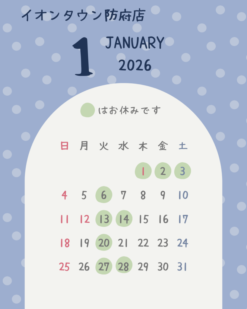 紅屋八王子本店と紅屋イオンタウン防府店の1月カレンダーです。
